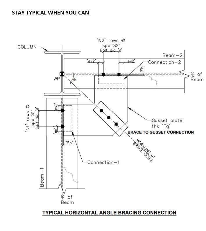 When we’re provided multiple atypical connections, we have to detail and fabricate them individually, which requires more labor and time. We suggest providing typical connections whenever possible.
